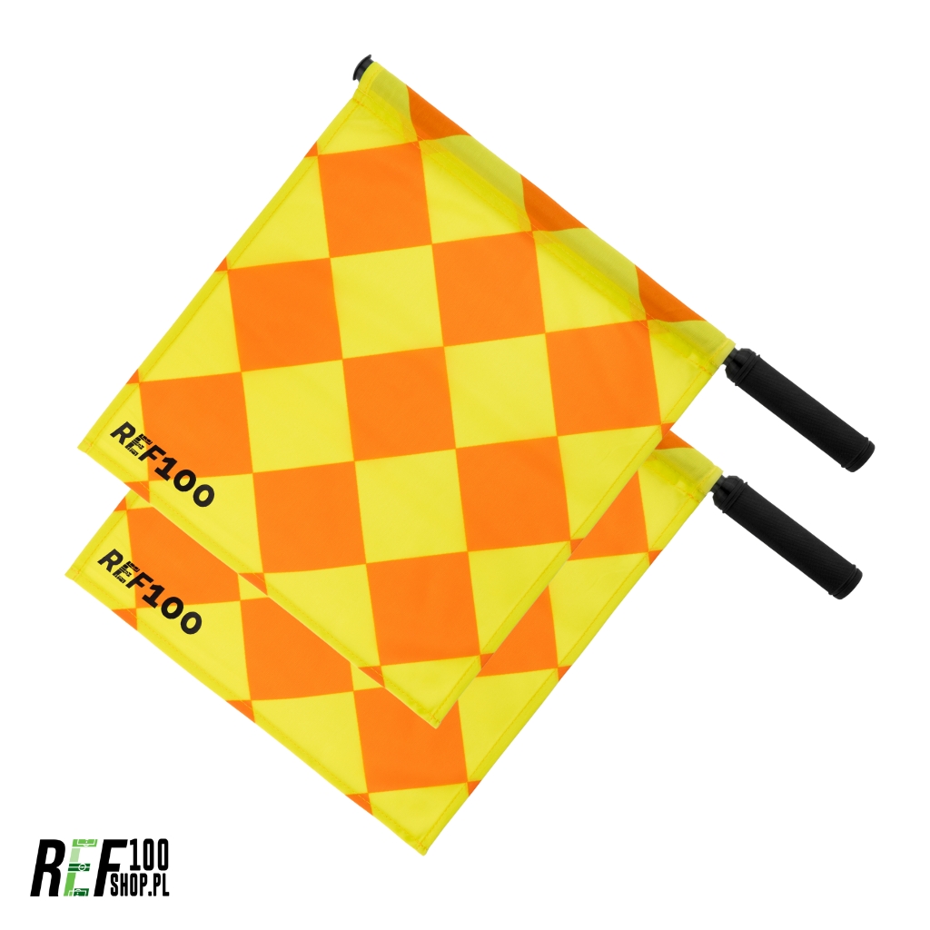 - 2x Obrotowa flaga sędziowska REF100 (diamentowy wzór)