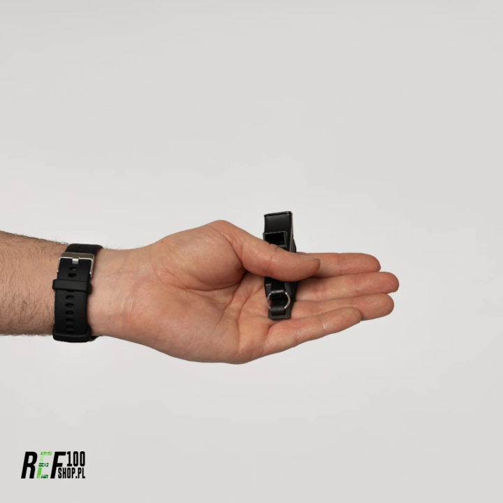 Dodatkowo wraz z gwizdkiem dołączony jest rewolucyjny uchwyt w 3 rozmiarach do mocowania między palcami. Bardzo przydatne narzędzie podczas dynamicznej rozgrywki, gdzie sędzia musi szybko przemieszczać się kontrolując grę.