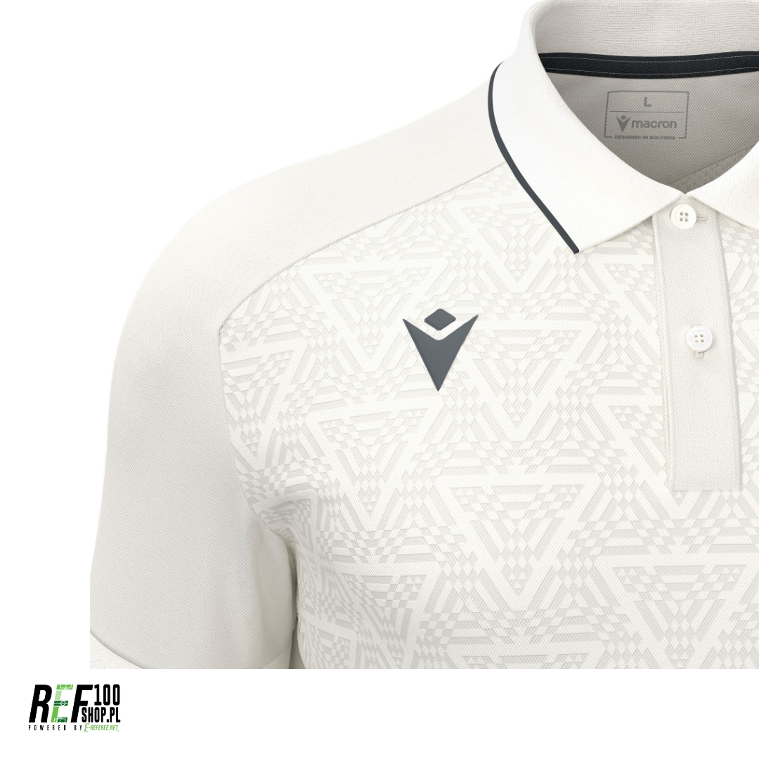 Koszulka Polo Macron Baldwin – polo reprezentacyjne wykonane z poliestrowej tkaniny Piquet Soft z tyłem z Micromesh, zapewniającym ciągłą przewiewność i świeżość. Posiada dzianinowy kołnierzyk polo oraz geometryczny tłoczony wzór na przodzie, który dodaje głębi i charakteru.