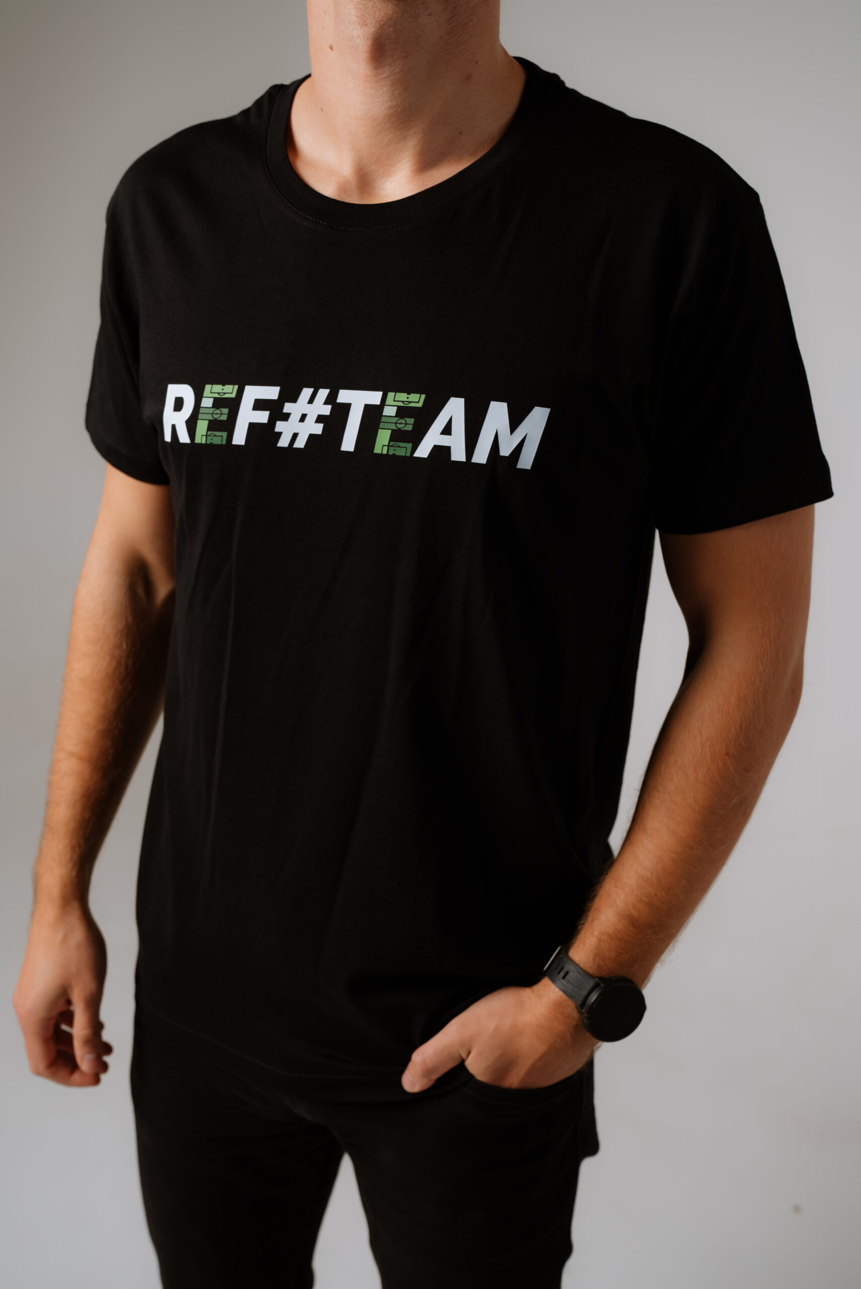 Koszulka REF#TEAM – czarna (biało – zielony nadruk)