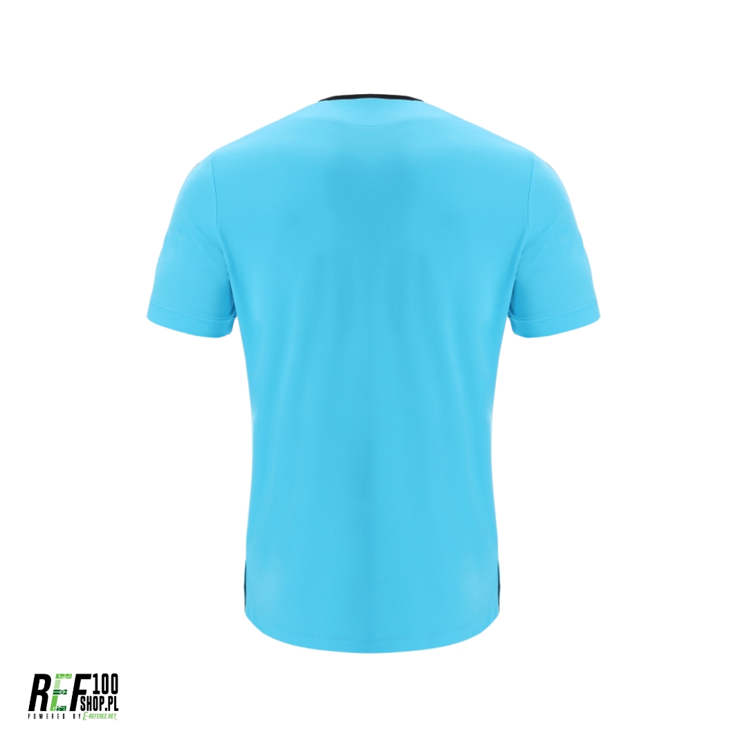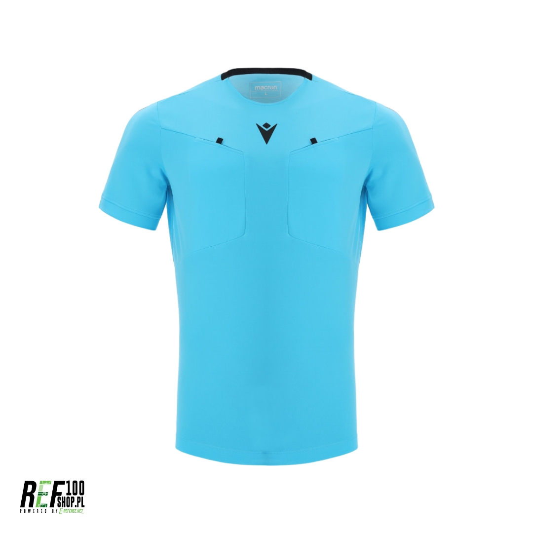 Koszulka sędziowska Macron Frisk w kolorze niebieskim wykonana jest w 100% z poliestru. Koszulka posiada na froncie dwie kieszenie na kartki, które są zapinane na rzepy. Siatkowe wstawki na ramionach zapewniają lepszą wentylację.