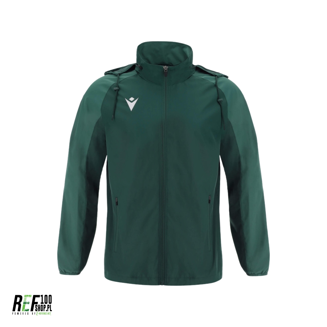 Ortalion Macron Elbrus – Kurtka wykonana z wodoodpornego materiału z siateczkową podszewką, jednocześnie nieprzemakalna i oddychająca. Zamek błyskawiczny z przodu na całej długości, odwrócony, nylonowy, z suwakiem blokującym. Boczne kieszenie zapinane na zamek. Kaptur chowany w kołnierzu, elastyczne mankiety oraz ściągacz u dołu. Wstawki w tonacji kolorystycznej na rękawach.