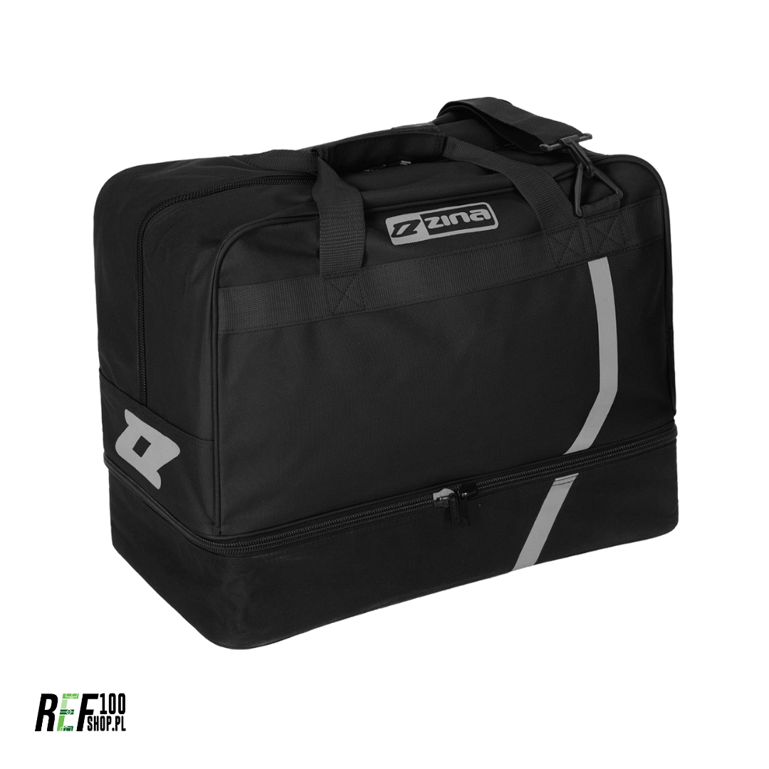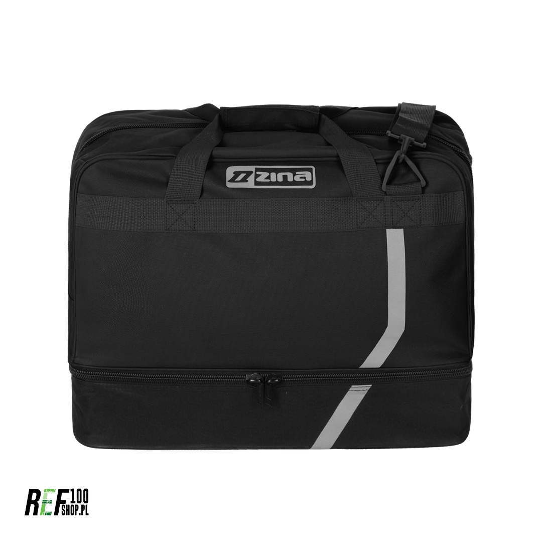 Torba Zina SALSA to doskonałe rozwiązanie dla sędziów i aktywnych osób, które cenią nowoczesny design i wysoką jakość. Wykonana z trwałego poliestru i nylonu, gwarantuje wytrzymałość i odporność na codzienne użytkowanie. Przemyślana konstrukcja obejmuje pojemną komorę główną zamykaną na suwak oraz wentylowaną przegrodę na buty piłkarskie, co pozwala na utrzymanie porządku. Ergonomiczne rozmieszczenie suwaków zapewnia szybki dostęp do zawartości. Regulowany, odpinany pasek oraz wyściełane rączki zwiększają komfort noszenia. Torba Zina SALSA o pojemności 50L idealnie pomieści twój sędziowski ekwipunek.