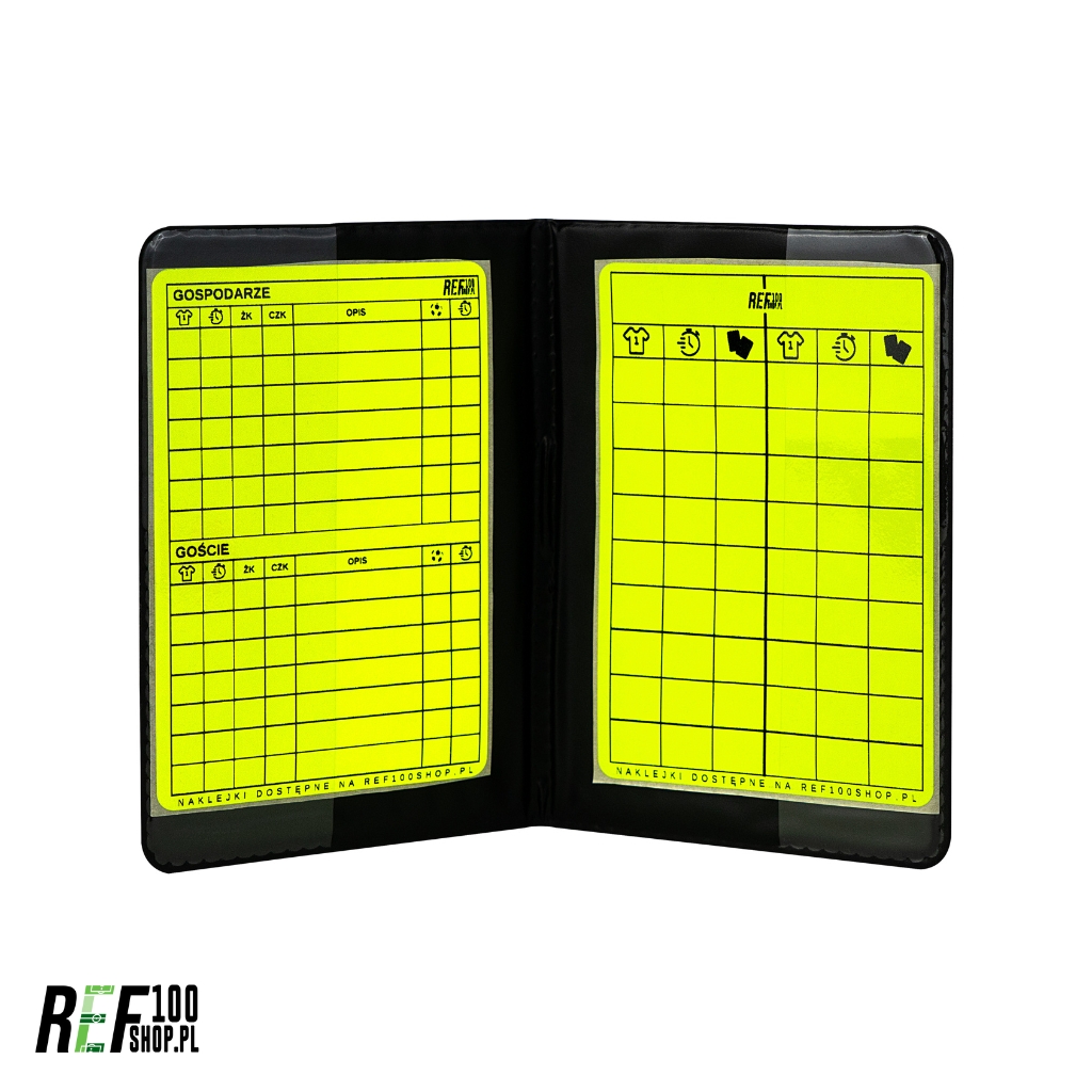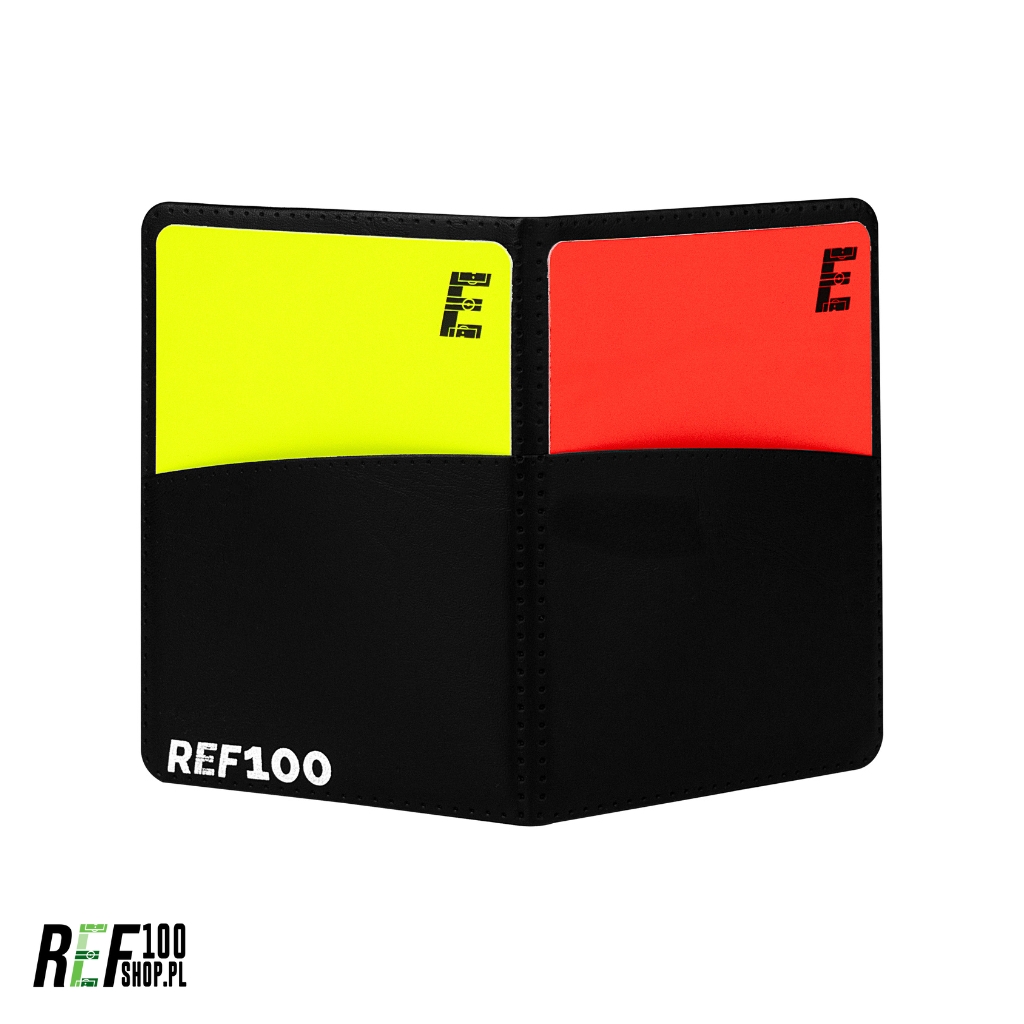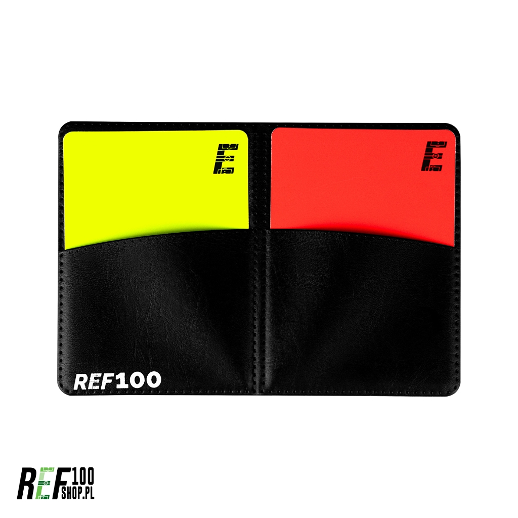 Zestaw kartek sędziowskich FIFA REF100 – zestaw kartek sędziowskich (żółta i czerwona) w rozmiarze FIFA (8 cm x 11 cm) , wraz z wodoodpornym etui.